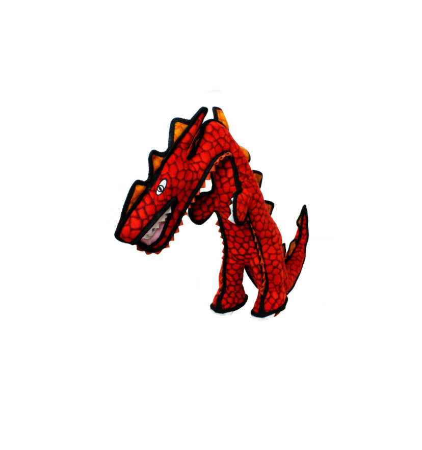 Tuffy’s Durable soft dog toy made with multiple layers of material, and multiple rows of stitching. The seams of the toy are covered with an additional layer of material and sewn closed again for added durability. The top of the toy is cross stitched to make it harder to get inside the toy. The squeakers are sewn into safety pockets inside the toy for added safety. It's machine washable (air dry). Each toy has Tuff Scale rating that tells you how durable each toy is based on it's individual shape, and our consumer feedback.